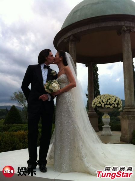 2012年9月30日香港訊]香港名模周汶锜(Kathy)與法藉男友Julien Lepeu的童話式婚禮于法國古堡舉行,Kathy 身披價值五十萬的白色拖尾婚紗出嫁,是公主設計師Elie Saab的尊貴作品。由于行禮前下著毛毛雨,令Kathy十分擔心,直至兩人行禮時,天公造美,新娘在證婚和交換戒指儀式時