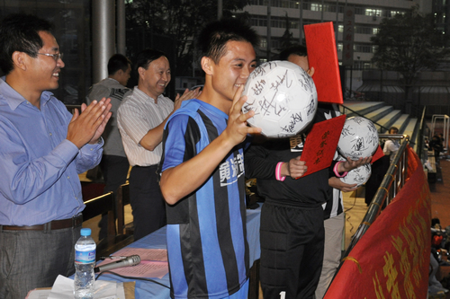 賽后的頒獎典禮在熱烈氣氛中舉行,冠軍黃海生物隊、亞軍東北大區隊隊及季軍伲福達隊分別贏得5000元、3000元、2000元獎金及獎杯。而球員王龍、王昆侖、胡濤則斬獲最佳射手、最佳球員、最具潛力球員稱號,并得到青島中能隊簽名版足球一個。