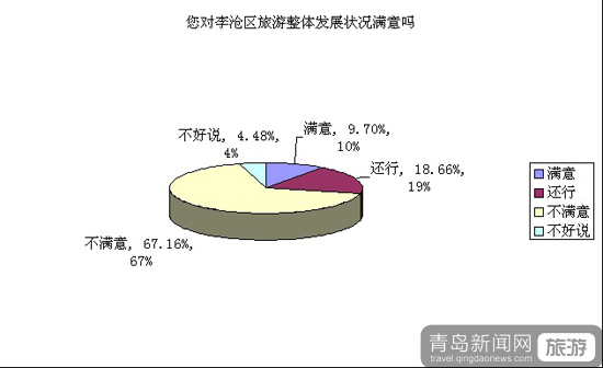 在李滄區旅游滿意度調查中,近七成的網友對李滄區旅游整體發展狀況表示失望,高達59.70%的網友對李滄區景區管理建設方面表示不滿意,“逛過李滄之后,您還會帶朋友來李滄休閑游玩嗎?”的選項中僅有19.40%的網友表示還會再來。