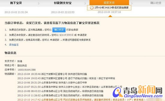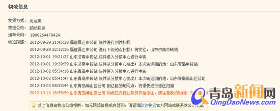 ????在本網發出關于韻達快遞送貨延遲的相關新聞后,有多位網友聯系到記者,表示自己近日也遇到了類似的情況。其中一位張女士說道:“2012年10月4日,淘寶賣家從浙江發貨,10月8日,我查詢韻達快遞的追單詳情,就停留在‘山東青島嶗山區公司 到達目的地網店,將很快進行派送掃描’,這條記錄一直延續到10月10日上午。那天中午,我撥打韻達快遞公司總部客服熱線詢問情況,對方只說會盡快安排處理。于是,下午時,貨單追蹤記錄變成了‘已開始派送’,但我聯系頁面顯示的派送業務員小嚴,對方卻一直在通話中,始終聯系不上。”