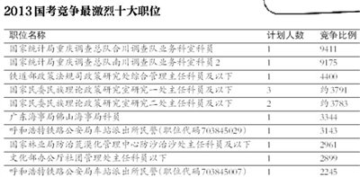 本屆“國(guó)考”競(jìng)爭(zhēng)最激烈的職位同屬?lài)?guó)家統(tǒng)計(jì)局重慶調(diào)查總隊(duì),最終競(jìng)爭(zhēng)激烈程度堪稱(chēng)“萬(wàn)里挑一”。