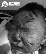 ????寶寶隨后被送至金華市中心醫院,醫生對他實行了全麻氣管切開手術。由于傷口太深,有的地方肉都沒有了,醫生不得已在寶寶臉上縫了上百針。