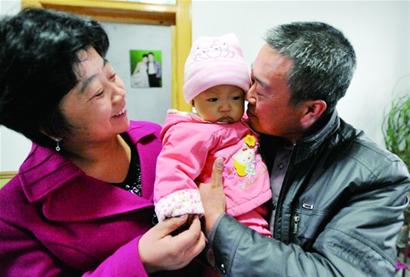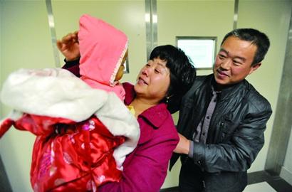 一些得知小雪出院的市民紛紛趕到醫院看望小雪。“我女兒4個多月大,當了父親以后,特別受不了孩子生病遭罪,在報紙上看到小雪流淚的眼睛,天天都掛念著她。”市民周先生說。此時的韓通寶在重癥監護室門前焦急地等待,不斷探身從門縫里向里張望,看看護士是否將小雪抱出來了。下午3時許,監護室的門緩緩打開,護士抱著小雪走了出來。看到小雪出來了,韓通寶夫婦張開雙手迎了上去,小雪住院18天來,夫婦兩人每天都盼望小雪出院的這一天。小雪媽媽告訴記者,來接孩子是件喜慶的事,為討個好彩頭,出門時她特意穿了件紅色外套。從醫務人員手中接過小雪,夫妻二人眉開眼笑,一個勁叫著小雪的名字。叫著叫著,小雪媽媽的眼淚就流了出來,接著又哭了起來。“18天沒見著俺閨女了,這一見面有些激動。”小雪媽媽擦了一把眼淚,轉而破涕為笑。