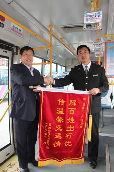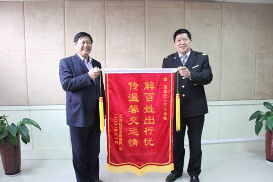????曲總鄭重地接過(guò)錦旗,表示公司將繼續(xù)致力于發(fā)展城郊公共交通事業(yè),為更多的山區(qū)居民解決出行困難的問(wèn)題,像錦旗上寫的那樣,“解百姓出行憂,傳溫馨交運(yùn)情”!(照片拍攝 曹俊杰 稿件撰寫 辛世偉)