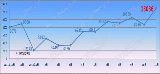 據(jù)統(tǒng)計(jì)顯示,今年11月青島市新建住宅成交量為13036套,比10月份8756套的簽約量增加了4280套,環(huán)比增長(zhǎng)了49%;同比去年11月份新建住宅8078套的成交業(yè)績(jī)?cè)鲩L(zhǎng)了4958套,同比增幅超過了60%,從成交量和成交面積上雙雙刷新了2012年度新房成交紀(jì)錄,為青島樓市開啟了一段史無(wú)前例的“暖冬”之旅。縱觀這一年的青島樓市,迄今為止11月份是年內(nèi)第二次住宅成交量破萬(wàn)套,第一次成交量“破萬(wàn)”出現(xiàn)在“金九”,9月份青島新房成交10549套,當(dāng)時(shí)不少業(yè)內(nèi)人士都?xì)g欣鼓舞,但隨之而來(lái)的“銀十”并不樂觀。