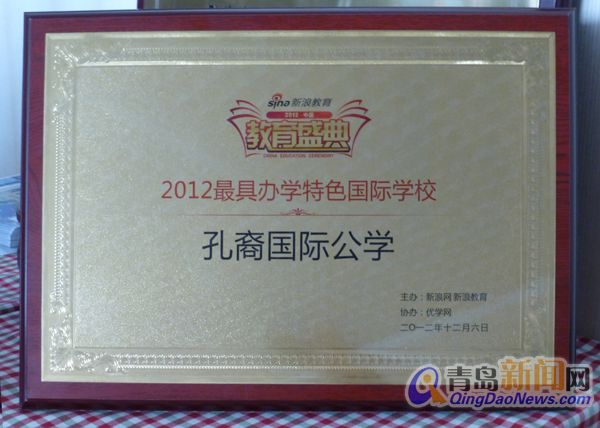 青島孔裔(牛津)國際公學連續兩年在全國權威的新浪教育論壇獲得重要獎項。2011年,學校在新浪教育論壇榮獲了“新浪2011最受家長信賴中小學國際學校”。今年,孔校長再次參加教育論壇,我校再度獲得“2012最具辦學特色國際學校”、“2012最具綜合實力教育集團”兩項大獎。加油!