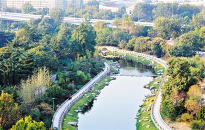 ????西山老年主題公園位于李滄區君峰路、西山一路交會處附近,根據規劃設計,主題公園結合現狀場地分為3個區段。今夏記者前往現場看到,一池湖水讓人心曠神怡,湖水中的睡蓮在微風中搖曳生姿,不遠處的石橋串聯起湖兩岸,可謂是鬧市中的幽靜地,幾位老人閑坐湖邊棧道談天說地。據了解,這里北邊原來有個小湖,俗稱 “小西湖”,但場地非常小,根本活動不開,而且兩邊小區的雨污水大多隨意地排放到湖里邊,一到下雨天就很要命,把湖里邊的水也給污染了,為了徹底改善環境,施工人員清理了湖底的淤泥,并在原有植物的基礎上進行補栽綠植,新栽植喬灌木樹種包括雪松、黑松、水杉、廣玉蘭、國槐、樸樹、馬褂木、白臘、合歡、紫葉李、紫薇、櫻花、紫荊、西府海棠、連翹、冬青球、海桐、金葉女貞、石南、金銀木等。