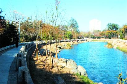 ????記者日前來到海泊河流域發電廠橋附近看到,橋兩側已建起一條寬達近10米的景觀帶,種上了白蠟、紅葉石楠等景觀樹種,沿岸垂柳依依,且在岸邊建起了護坡。人行道上用的是透水地坪,不僅能起到透水的作用,而且十分美觀。漫步在景觀小徑上,仿佛來到環境優美的公園。而在海泊河公園內,河道內部綠化景觀建設已初顯效果。此前海泊河河道內沒有綠色植物,通過改造,原本空蕩蕩的河道被裝飾一新。