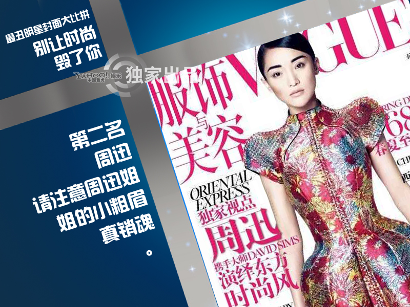 女星最丑封面PK:周迅粗眉可分切糕 章子怡變非洲人(圖)