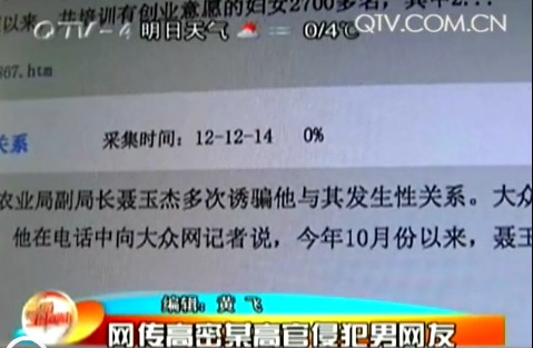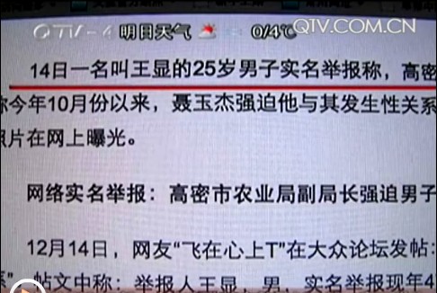 ????最近,一位名叫“飛在心上T”的網友,在大眾論壇發表了一條名為“實名舉報高密市農業局副局長,誘騙男生強迫發生性關系”的帖子。貼子中,一個名叫王顯的25歲男子,實名舉報高密市農業局副局長聶玉杰,多次誘騙他并強迫與他發生性關系多達5次,同時還威脅他,不許走漏風聲,否則就把他的照片在網上曝光。帖文中敘述說,今年7月份,高密市農業局副局長聶玉杰加了王顯的qq號,之后倆人以普通朋友的身份在網上聊天,十分投機,而聶玉杰更是讓從小沒有父親的王顯,感受到了父親般的溫暖。兩人在網上聊了五個月后,今年的10月17號,聶玉杰提出見面,兩人約在了濰坊田思瑞國際大酒店,并開了房間,之后強迫王顯和他發生性關系。