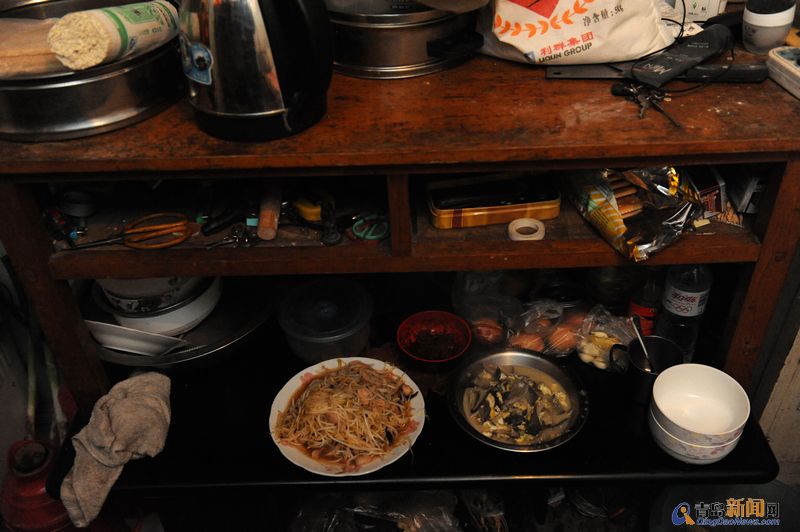 ????整個宿舍不足15平米,兩個人勉強能生活,旁邊的一張床是為孩子有時候回來住一晚準備的。