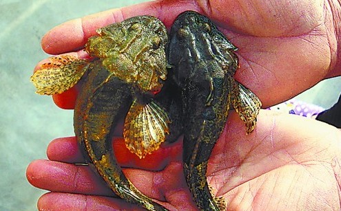 在養殖公司負責人茍煥坤的帶領下,記者在培育車間見到了這些珍貴的松江鱸魚,每只個頭10到15厘米長,與成年人的手掌大小差不多,頭部和腹部比較大,全身呈灰色,背部和背鰭上有小黑斑。