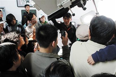 “一般認為,太陽黑子實際上是太陽表面一種熾熱氣體的巨大漩渦,溫度大約為4500℃。因為比太陽的光球層表面溫度要低,所以看上去像一些深暗色的斑點。太陽黑子很少單獨活動,常常成群出現,其活動周期約為11年。 ”在天文臺上,工作人員一邊操控著天文望遠鏡觀測著黑子,一邊說:“平常的太陽黑子面積比一個地球的面積還小。而到了太陽活動高峰年的時候,太陽表面會出現實際面積是地球十幾倍的黑子群。太陽活動的高峰年,或許會出現太陽風暴。 ”孫立南介紹。太陽黑子的大面積出現,會引起紫外線輻射的大幅度增強,還有可能會對地球的磁場和各類電子產品和電器產生損害。