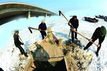 ????記者了解到,針對極寒天氣帶來的不利影響,連日來紅島邊防派出所抽調警力,每天協助當地漁民破冰。“這樣的極寒天氣,打破的冰層會很容易再次結冰,為此我們加強了巡邏,遇到險情及時通知漁民,聯合救險。”邊防民警說。