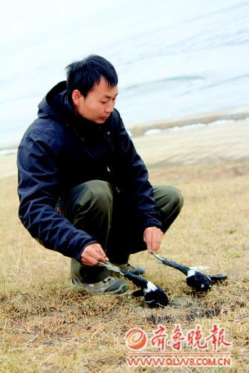 ????鳥類攝影愛好者薛先生經(jīng)常到墨水河濕地拍攝鳥類。一周前,他在墨水河濕地?cái)z影時(shí)看見幾個(gè)身穿防水膠服的人在河道里撈死亡的野鴨,已經(jīng)撈了好幾個(gè)麻袋,岸上停著一輛面包車。這些人撈上來野鴨后交給了面包車,薛先生問這些人在干什么,這些人反問他關(guān)心這個(gè)干嘛。此時(shí),面包車感覺被人發(fā)現(xiàn)后調(diào)頭就跑,薛先生趕緊撥打110報(bào)警,警方到達(dá)后這些人早已離開。