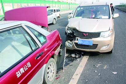 ????杭鞍高架路平時車少路寬,許多司機駕車行駛時往往都加大油門“撒歡跑”,在這種情況下,一個小意外就會引發(fā)嚴重事故。昨天下午1時左右,一輛白色轎車行至人民路下橋口附近時突然變道,位于其身后的出租車減速避讓,結(jié)果后方一輛面包車躲閃不及,引發(fā)3車連撞事故,萬幸的是事故沒有造成人員傷亡。
