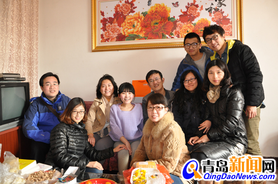 ????中午12點左右網友探訪團一行人,與小淑乾依依話別,青島新聞網編輯記者團隊10余人請她坐在中間,一起合影,新聞網編輯王陽在合影前,還主動為她梳起了一個小把子,顯得更加清純。這張照片記錄著小淑乾從此融入了青島新聞網溫暖的大家庭。
