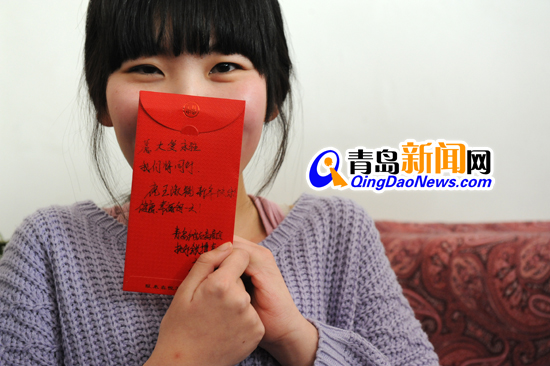 ????青島市39中初二的孩子們,送上了三百元壓歲錢,希望小淑乾能買更多的書。