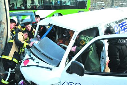 面包車從坡頂疾馳沖下,司機一時無法將車剎住,他害怕撞上其他車輛,下意識地向左打方向盤躲避,失控的車輛撞上路邊的法國梧桐樹,坐在副駕駛座位上的男青年頭部受傷,右腳被扭曲變形的車身擠住。昨天上午11時40分左右,紹興路與敦化路口北100米處發生車禍,119消防隊員用了40多分鐘才將被困男青年救出,緊急送往醫院搶救。此時這名男青年因為流血過多已經昏迷不醒。