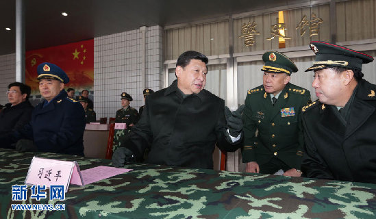 ????1月29日,中華民族的傳統節日春節來臨之際,中共中央總書記、中共中央軍委主席習近平到武警部隊視察,代表黨中央、國務院和中央軍委,向武警部隊全體官兵致以節日的問候。這是習近平在武警北京市總隊十三支隊觀摩緊急出動演練。(記者 李剛 攝)