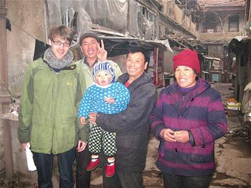 ????“這是我的房間,秋天有陽光暖暖地投射進來,特別美。”屋內供主人孩子睡覺的吊鋪和踩上去吱呀呀作響的紅色木地板,都讓這個來自遙遠國度的小伙兒好奇。平常,他最喜歡倚靠在窗前看街景。“賣菜的攤販每天早上五六點出攤,晚上很晚才休息。他們不僅賣菜,還給飯店送貨,生活得很辛勞。”熱情友好的菲利浦很快融入這里。在吹著柔柔夜風的秋天的傍晚,人們常常看見一個外國小伙和大伙圍坐在一起,吃拉面、煮蛤蜊、做燒烤,孩子們圍著這個大哥哥學說英語。