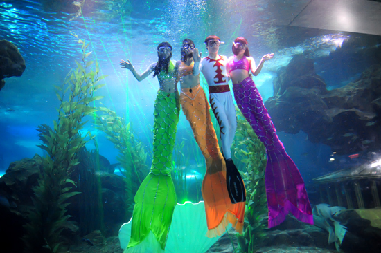 自2月5日開始,國際首創的海底情景劇——夢幻現實版“美人魚表演”重磅登場。整個表演采用了聲、光、電、動漫等現代視聽技術,用高科技手段和真人水下表演虛實結合的表現方式,完美地再現了美人魚公主和王子的浪漫愛情童話故事。色彩斑斕的海葵、搖曳多姿的水草、輕盈飛舞的氣泡、美麗無比的海神宮、絢麗多彩的大貝殼,漂亮的美人魚、瀟灑的王子、慈祥的海神、邪惡的巫師等表演元素,進一步凸顯了青島海洋文化的獨特魅力。