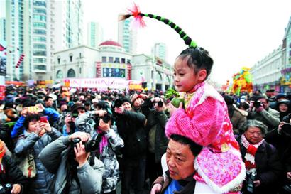 ????記者來到昌樂路文化街的蘿卜元宵糖球會會場看到,會場周邊的各條道路上已經擠滿前來趕會的市民。整條昌樂路文化街成為民俗觀賞區,來自花燈之鄉的自貢吉祥花燈,排成200多米的花燈長龍,吸引了眾多市民在花燈前拍照留念。沾化路和濱縣路等周邊道路則聚集了蘿卜、糖球和各種小吃攤點,各種美味讓這幾條街道人山人海,一些帶著孩子來逛會的市民只得把孩子扛上肩頭。而這些打扮入時的小朋友立刻成為眾多攝影愛好者的拍攝目標,連同商家叫賣的各種展示,讓會場成為各種“秀場”。