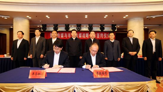 ????省新聞出版局局長宿華,省新聞工作者協會主席高挺先,大眾報業集團黨委書記、董事長、總編輯傅紹萬,青島市委常委、宣傳部長胡紹軍,大眾報業集團黨委副書記、齊魯傳媒集團總經理梁國典出席儀式;大眾報業集團黨委常委、副總編輯、半島都市報社社長、半島傳媒股份有限公司董事長鄭立波,青島日報社社長、黨委書記、青島報業傳媒集團董事長蔡曉濱代表雙方簽署了協議。(青島新聞網記者)