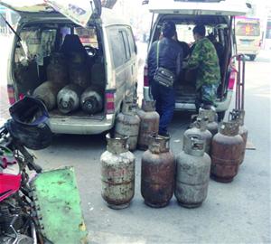 報(bào)廢車內(nèi)堆滿煤氣罐