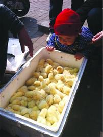 記者采訪發(fā)現(xiàn),市民們購買的目的卻不盡相同,有老人購買是為了拿回家逗孩子玩,還有市民購買是為了體驗一下養(yǎng)小雞仔的樂趣。胡女士介紹,還有人專門買小雞回家養(yǎng)大,然后當做盤中餐食用。這樣也讓自己吃得放心。不過據(jù)了解,按照規(guī)定,市區(qū)不允許飼養(yǎng)活雞。(李沛)