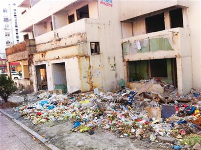 昨天下午,記者來到這處位于敦化路的衛生死角,在一棟廢棄的居民樓上,寫著大大的“拆”字,樓體周圍是四處可見的
