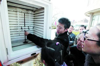 昨天上午不到9時,市氣象臺門口已經聚集了許多市民,大部分是家長帶孩子來了解氣象知識。市氣象臺院內停放了氣象應急指揮車和移動風廓線雷達車供市民參觀。“最近天氣就忽冷忽熱,變化無常,前幾天最高氣溫躥到近24℃,這幾天又冷下來了,我們來了解氣象知識,也想順便問問關心的氣溫還有霾天的問題?!睅е⒆右黄饋淼年愊壬f,他們每天在家通過電視、報紙等渠道獲取氣象預報,但并不知道氣象預報是怎么來的,在孩子的眼里還以為氣象預報員都是 “能掐會算”的。