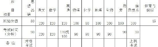考查科目:由各初中學(xué)校在4月1日(星期一)前完成。