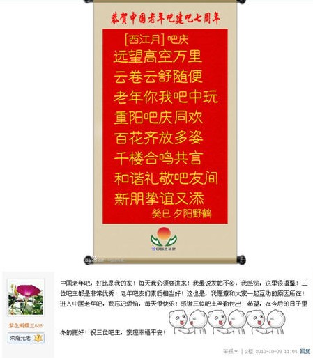 當(dāng)年趙本山的小品《鐘點(diǎn)工》用 “屋里憋屈型”對(duì)那些子女不在身邊、空虛寂寞、宅在家里不會(huì)找樂(lè)子的“空巢老人”進(jìn)行了調(diào)侃。事實(shí)上,隨著社會(huì)老齡化程度的加深,“空巢老人”越來(lái)越多。重陽(yáng)將至,如何構(gòu)建老年人精神家園再次得到大家的關(guān)注。與“屋里憋屈型”不同的是,在百度貼吧有這樣一群老年網(wǎng)友,他們將最新鮮的網(wǎng)絡(luò)元素,融入到自己的日常生活中,演繹著別樣的晚年生活。 昨天,記者瀏覽百度貼吧后發(fā)現(xiàn),在“中國(guó)老年吧”里聚集了2萬(wàn)多名吧友。眼下,他們正為建吧七周年出謀劃策。初步擬定了“語(yǔ)言類(lèi)”、“美術(shù)類(lèi)”、“音樂(lè)視頻類(lèi)”三大板塊。除此之外,熱心的吧友還特地設(shè)置了“重陽(yáng)節(jié)慶祝建吧七周年”祝福墻,短短1天的時(shí)間已經(jīng)得到上百條祝福。 ![]() 圖片來(lái)源于百度貼吧“中國(guó)老年吧” 除此之外,在“50年代”、 “夕陽(yáng)紅”、“悠悠花枝俏”等吧,也聚集了大量的老年吧友,他們曬旅游照片,交流養(yǎng)生經(jīng)驗(yàn),探討書(shū)法、圍棋、曲藝等,已然將貼吧當(dāng)成了自己的精神家園。 陸建軍,今年64歲,家住山西運(yùn)城。誰(shuí)都沒(méi)曾想到這位年近古稀的老人,已經(jīng)擔(dān)任百度貼吧“運(yùn)城吧”吧主三年多。 在貼吧里,陸建軍發(fā)表自己的家長(zhǎng)里短、傳送得意的攝影作品……忙的不亦樂(lè)乎。用他的原話(huà)講就是:“自己玩貼吧已到不能自拔的地步,有時(shí)下午5點(diǎn)上線(xiàn),半夜3點(diǎn)才關(guān)上電腦,玩貼吧已經(jīng)成為自己晚年生活不可或缺的一部分。” 更有網(wǎng)友表示“要在貼吧度過(guò)余生”。據(jù)了解,在這些聚集老年人的貼吧中,養(yǎng)生保健類(lèi)話(huà)題最為火爆,健康是老人們關(guān)注的焦點(diǎn)。除此之外,旅游、書(shū)法、棋藝、曲藝、詩(shī)朗誦等話(huà)題也喜聞樂(lè)見(jiàn),“成語(yǔ)接龍”、“猜字謎”、“造句”……老人們玩得不亦樂(lè)乎。50年生的“人到老年”在“50年代”吧里記錄起自己的晚年生活,酷愛(ài)京劇“楊家將”唱段的他,將演出視頻貼上來(lái)招攬粉絲;“童心常樂(lè)”在“中國(guó)老年”里為眾吧友獻(xiàn)上原創(chuàng)吧歌一首,引來(lái)頻頻叫好。老人們?cè)谫N吧結(jié)交同好,分享人生。 ![]() 圖片來(lái)源于百度貼吧“中國(guó)老年吧” 更重要的是,不少老年人通過(guò)玩貼吧,心態(tài)也在慢慢發(fā)生改變。今年68歲的“老小子”玩貼吧也有4個(gè)多年頭了,他告訴記者,自己之所以喜歡貼吧是因?yàn)檫@里聚集了很多80、90的年輕一代,在這里大家談?wù)摰脑?huà)題沒(méi)有生老病死、沒(méi)有誰(shuí)是誰(shuí)非……這些讓人壓抑的話(huà)題,而是每天策劃著到哪些社區(qū)做公益、到哪個(gè)地方搞個(gè)集體閱讀活動(dòng),久而久之,就感覺(jué)自己也充滿(mǎn)了活力,也能為社會(huì)發(fā)揮余熱。 據(jù)統(tǒng)計(jì),目前,“50年代”、“中國(guó)老年”等吧人氣十分火爆,貼子數(shù)均達(dá)到兩百萬(wàn)級(jí)別,就連十分偏門(mén)的“悠悠花枝俏”吧的發(fā)貼數(shù)也超過(guò)了10萬(wàn)。有的老人是在百度搜索時(shí)無(wú)意來(lái)到貼吧,更多的人是通過(guò)熟人介紹、口碑相傳的方式長(zhǎng)期駐守。 據(jù)中國(guó)互聯(lián)網(wǎng)絡(luò)信息中心(CNNIC)發(fā)布的第31次《中國(guó)互聯(lián)網(wǎng)絡(luò)發(fā)展?fàn)顩r統(tǒng)計(jì)報(bào)告》數(shù)據(jù)顯示,40歲以上各年齡段人群的網(wǎng)民占比均有不同程度的提升,尤其是60歲以上的老年人占比由2011年的0.7%增長(zhǎng)至2012年的1.8%,增速超過(guò)一倍。 與之相對(duì)應(yīng)的是,國(guó)內(nèi)主要互聯(lián)網(wǎng)服務(wù)均針對(duì)年輕網(wǎng)民設(shè)計(jì),能滿(mǎn)足老人喜好和需求的網(wǎng)絡(luò)服務(wù)鳳毛麟角。如此一來(lái),基于興趣主題、搜索關(guān)鍵詞的開(kāi)放平臺(tái)百度貼吧成為老年網(wǎng)民活動(dòng)的最佳舞臺(tái),老人們普遍表示“很難得還能在網(wǎng)絡(luò)上找到一堆老頭老太,再也不愁找不到話(huà)題了”。 貼吧相關(guān)負(fù)責(zé)人介紹,貼吧產(chǎn)品在設(shè)計(jì)最初也考慮到了老年人這一使用人群,所以在用戶(hù)界面和使用體驗(yàn)盡量遵循簡(jiǎn)潔流暢的原則。此外,貼吧客戶(hù)端最新推出了語(yǔ)音發(fā)貼功能,不僅讓廣大吧友享受語(yǔ)音發(fā)貼的樂(lè)趣,更是照顧到老年吧友等打字不方便的群體,提供了更方便快捷的發(fā)貼途徑。 當(dāng)然,為了能讓貼吧更好地為更多的老年人服務(wù),吧務(wù)人員也努力策劃老年人書(shū)法、繪畫(huà)、詩(shī)詞歌賦等比賽,在這里,老年人不再是科技時(shí)代的外圍人群,而成為了精神生活富足、充滿(mǎn)生機(jī)的網(wǎng)友。 相關(guān)社會(huì)學(xué)專(zhuān)家分析,網(wǎng)絡(luò)既豐富了老年人的文化知識(shí),也提高了他們的個(gè)人情操,不會(huì)把精力浪費(fèi)在雞毛蒜皮的小事上,而是轉(zhuǎn)入更有品位的生活,將晚年經(jīng)營(yíng)得充實(shí)而有意義。 【六旬老翁“傳授”玩轉(zhuǎn)貼吧小貼士】 今年64歲的陸建軍,玩百度貼吧已經(jīng)