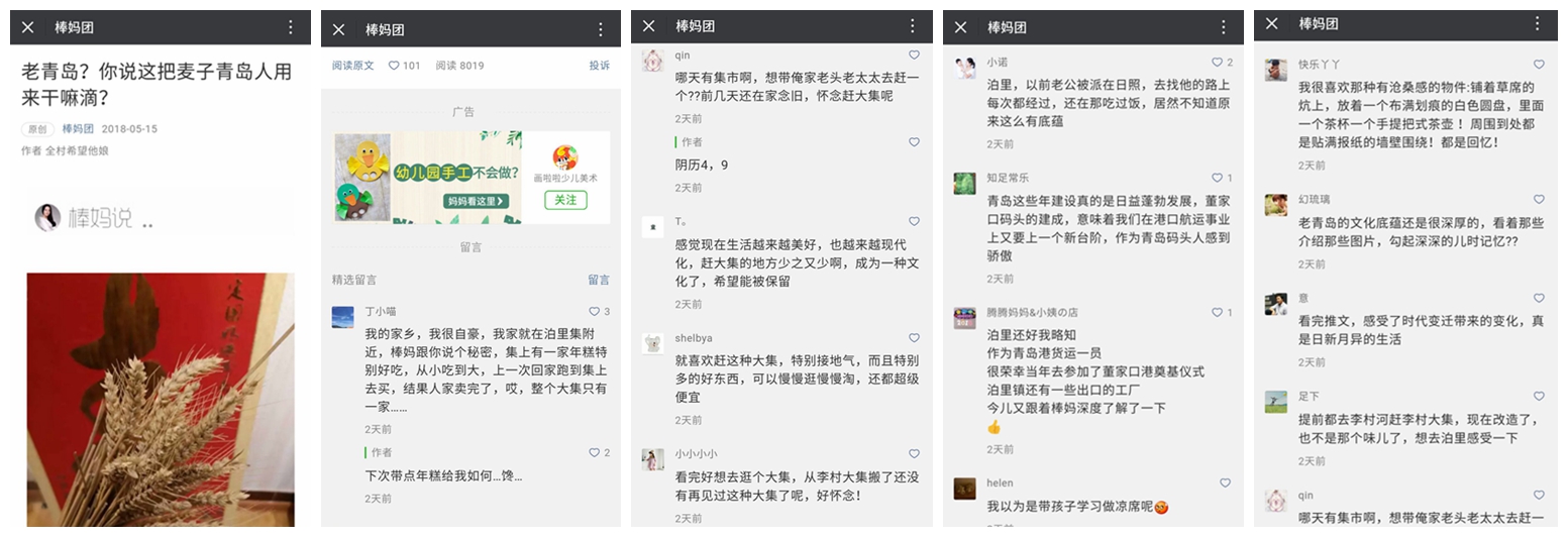 棒媽團(tuán)發(fā)布的“老青島?你說這把麥子青島人用來干嘛滴?”一文,用引人入勝的標(biāo)題以及生活活潑的語言給大家全面解讀了泊里,引發(fā)大家集體回憶,留言區(qū)不少網(wǎng)友留言表示要帶著孩子去泊里感受一下文化魅力。