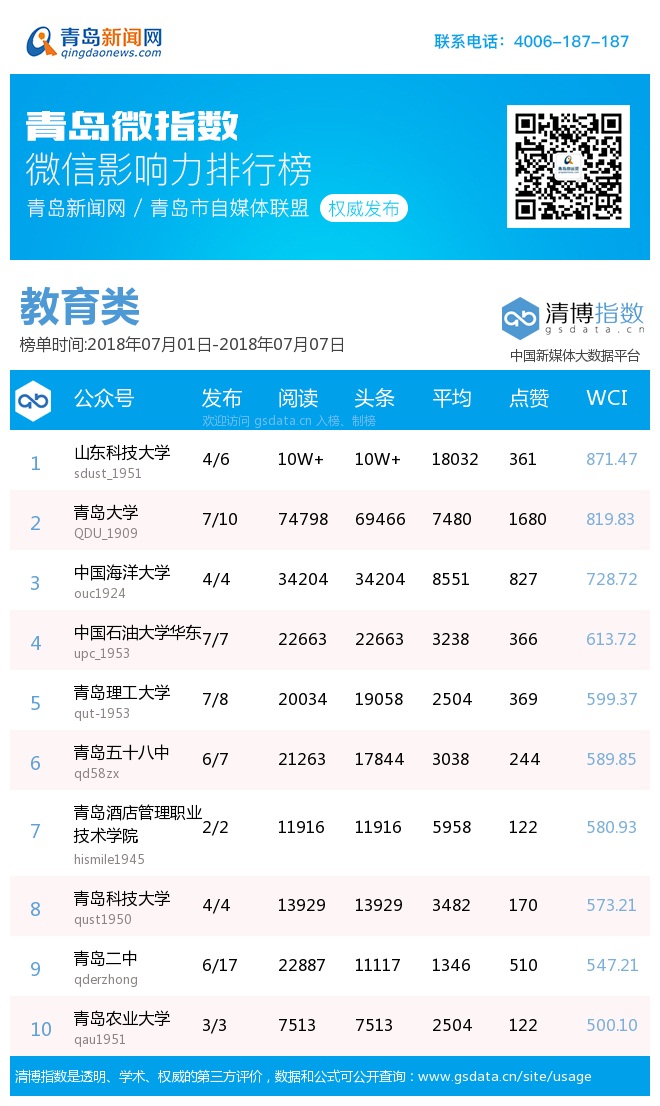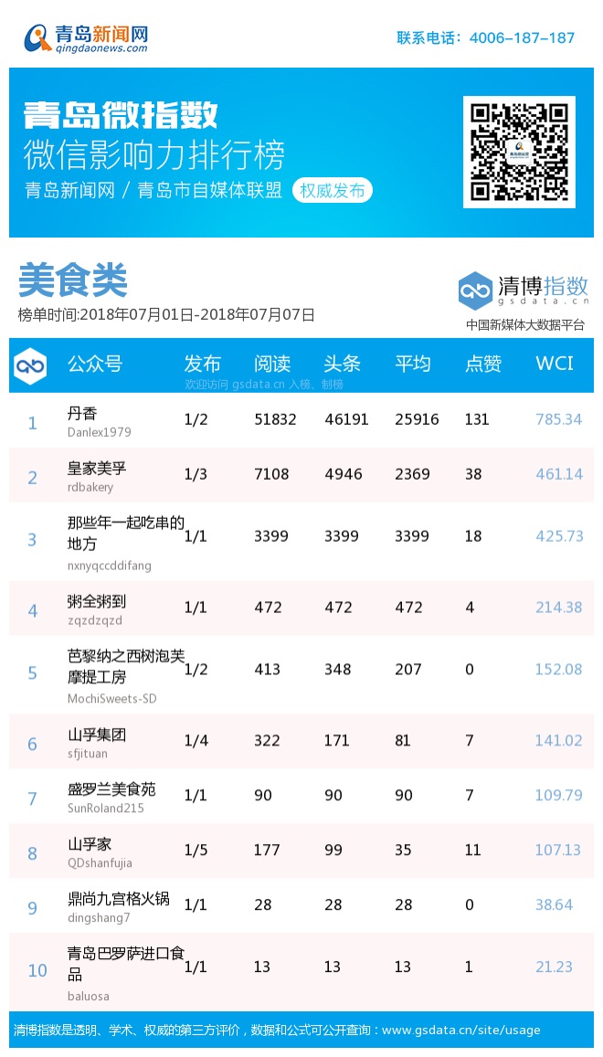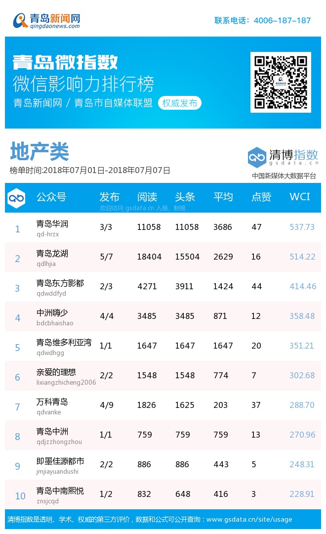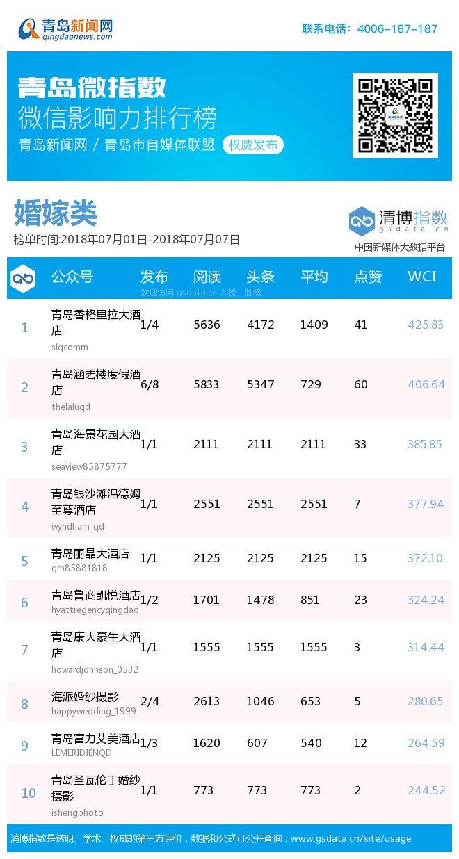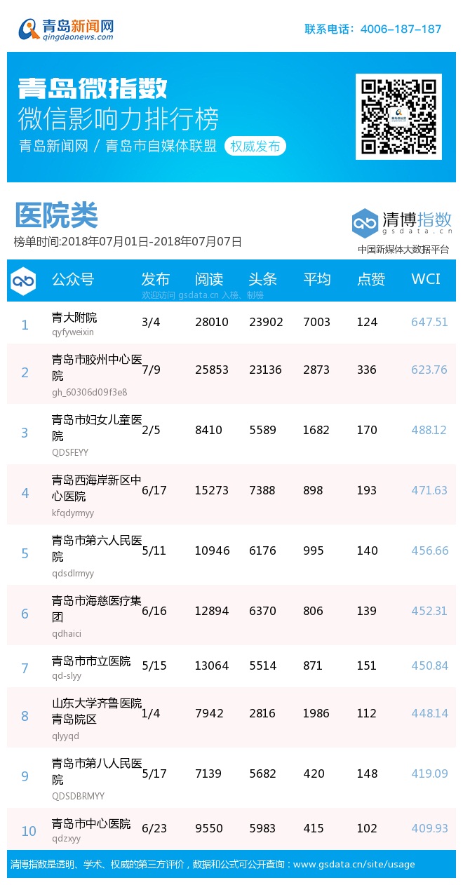 3、本次榜單收錄了青島14個行業微信公眾號,如您的賬號暫未收錄,可聯系4006-187-187。