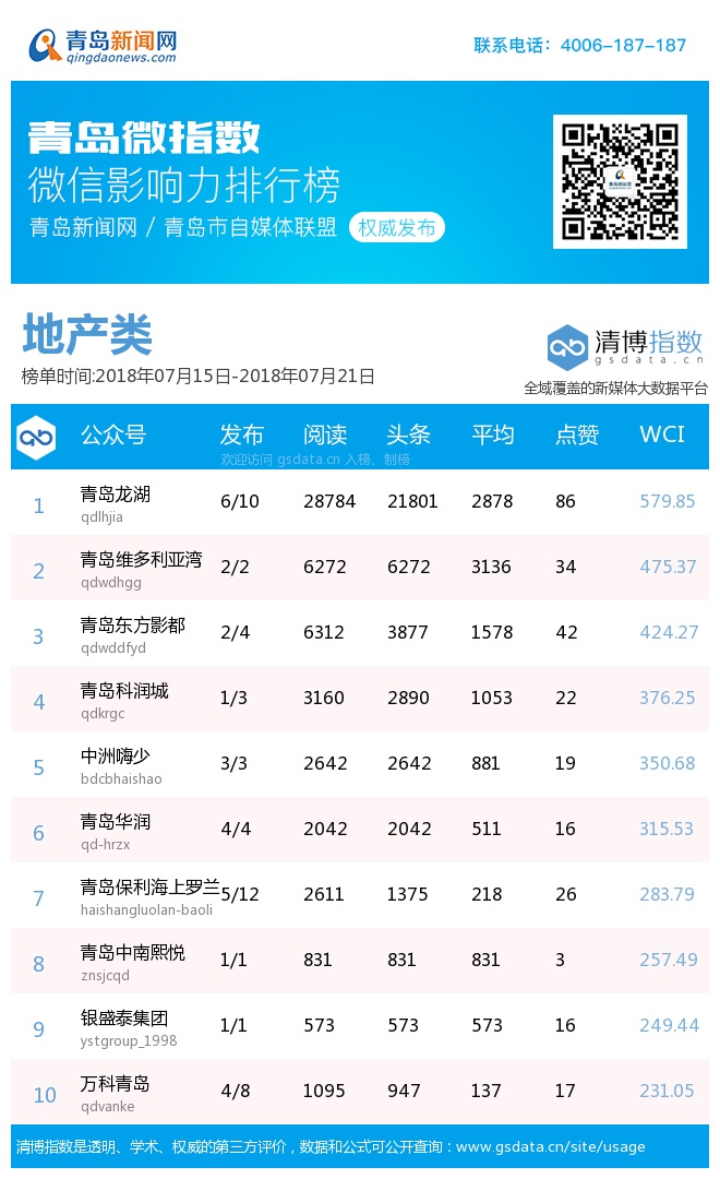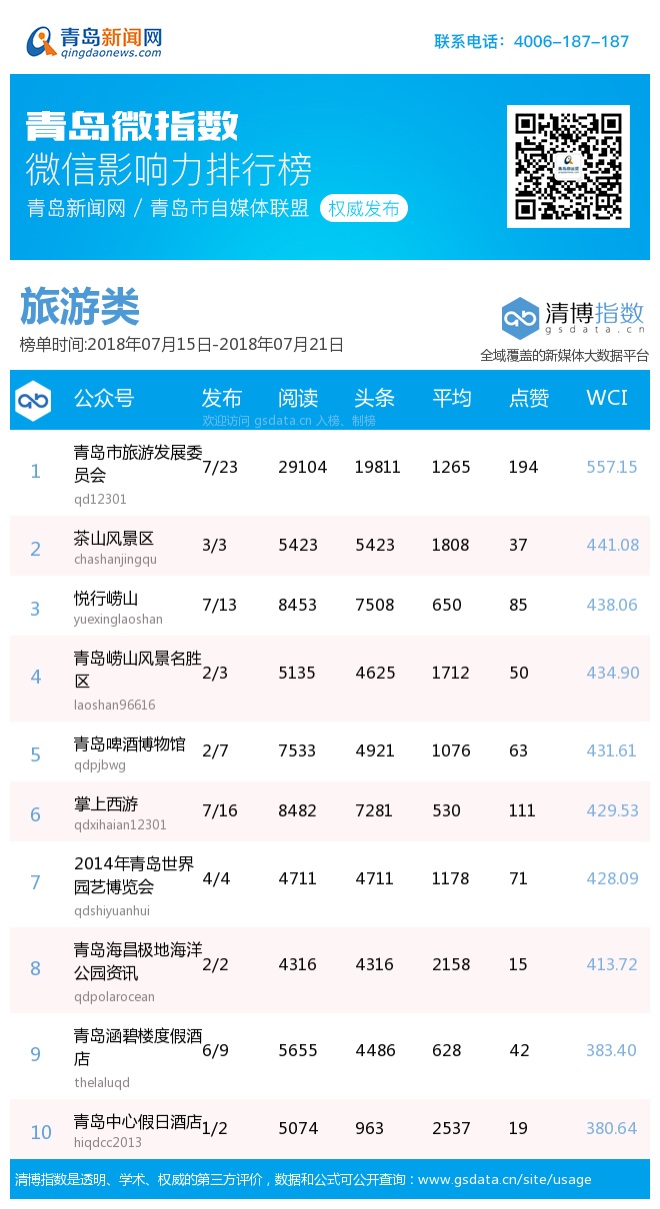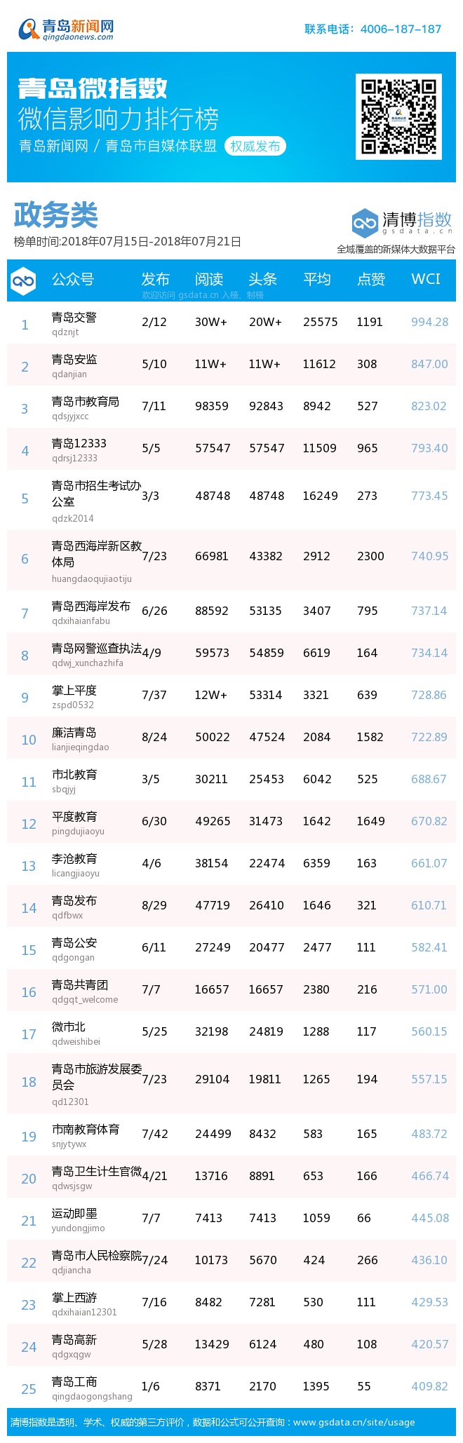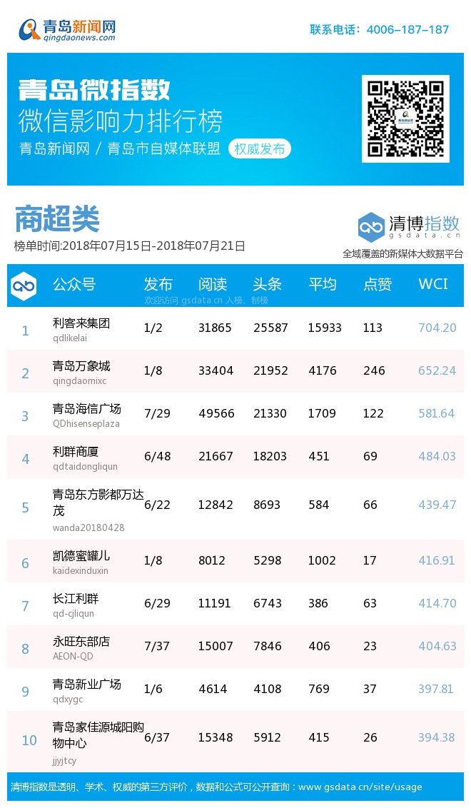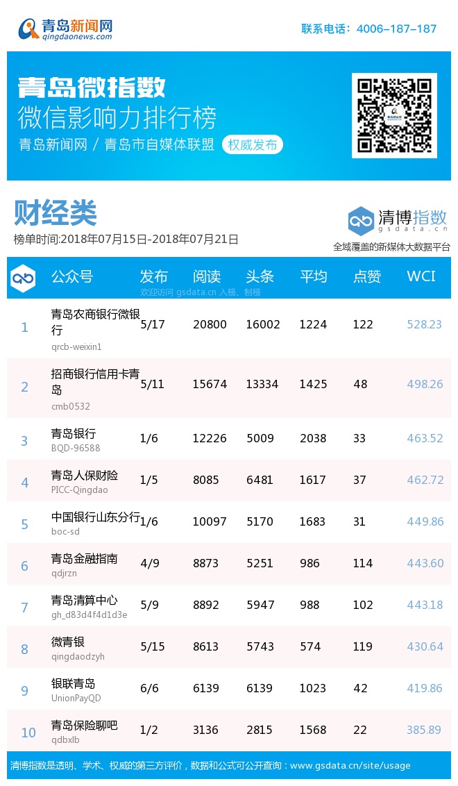 3、本次榜單收錄了青島14個行業微信公眾號,如您的賬號暫未收錄,可聯系4006-187-187。