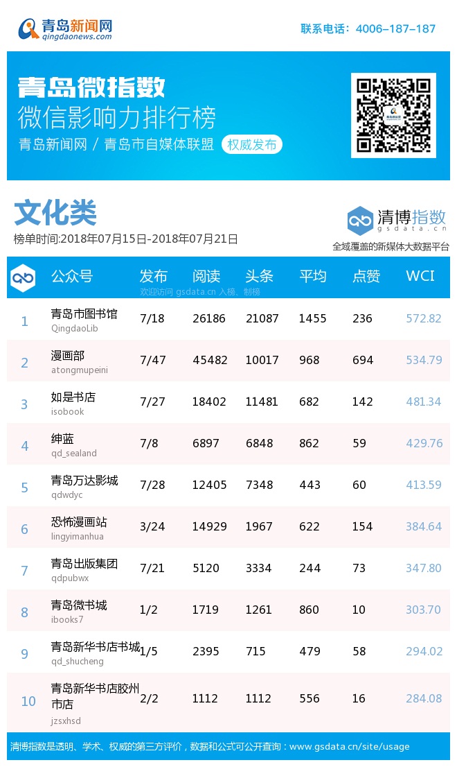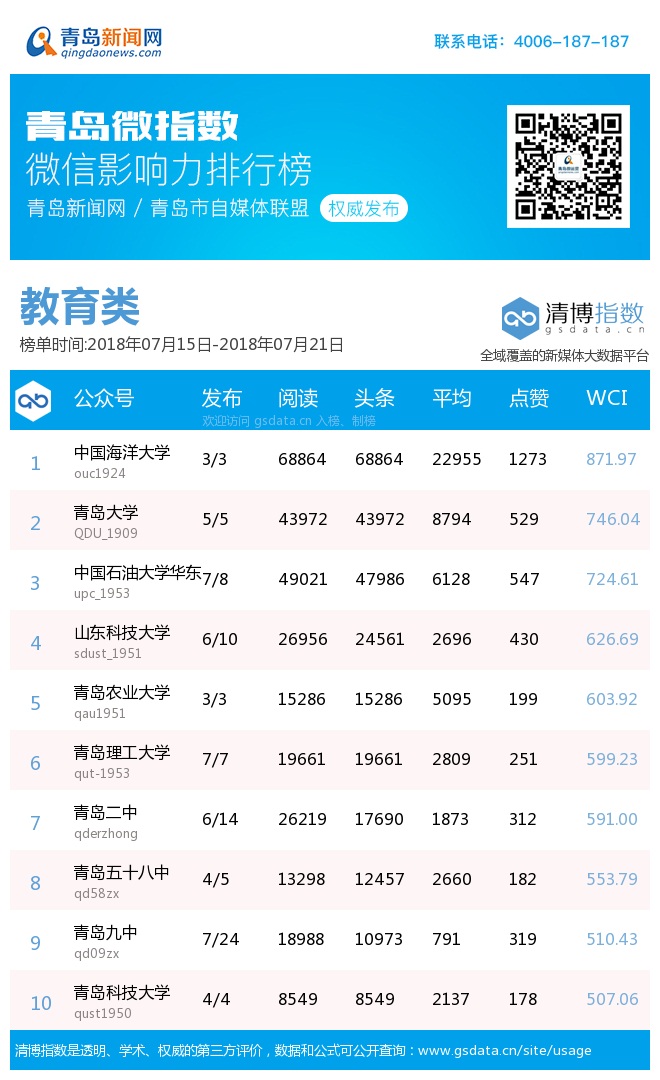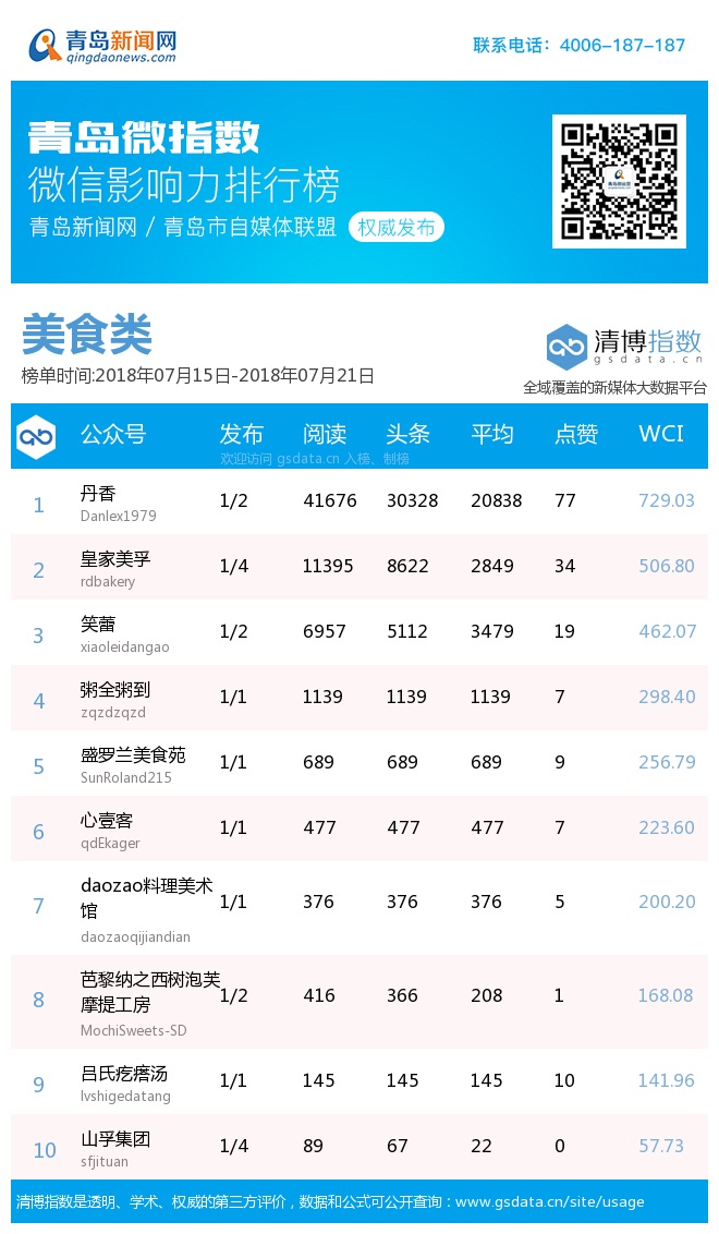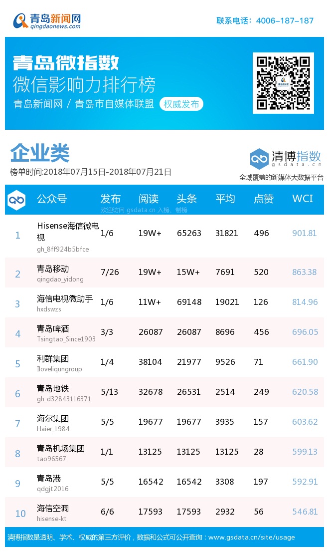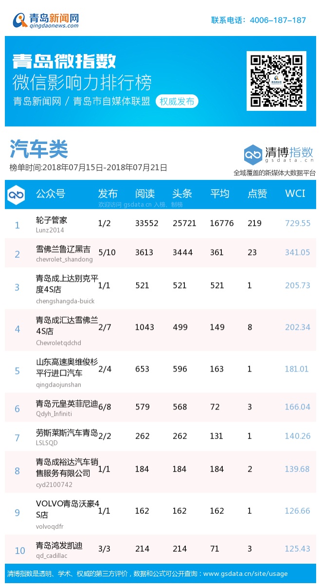 3、本次榜單收錄了青島14個行業微信公眾號,如您的賬號暫未收錄,可聯系4006-187-187。