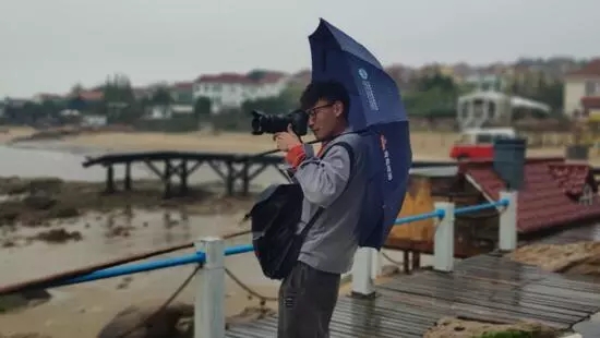 青島市自媒體聯(lián)盟成員“小螞蟻影視”冒雨拍攝