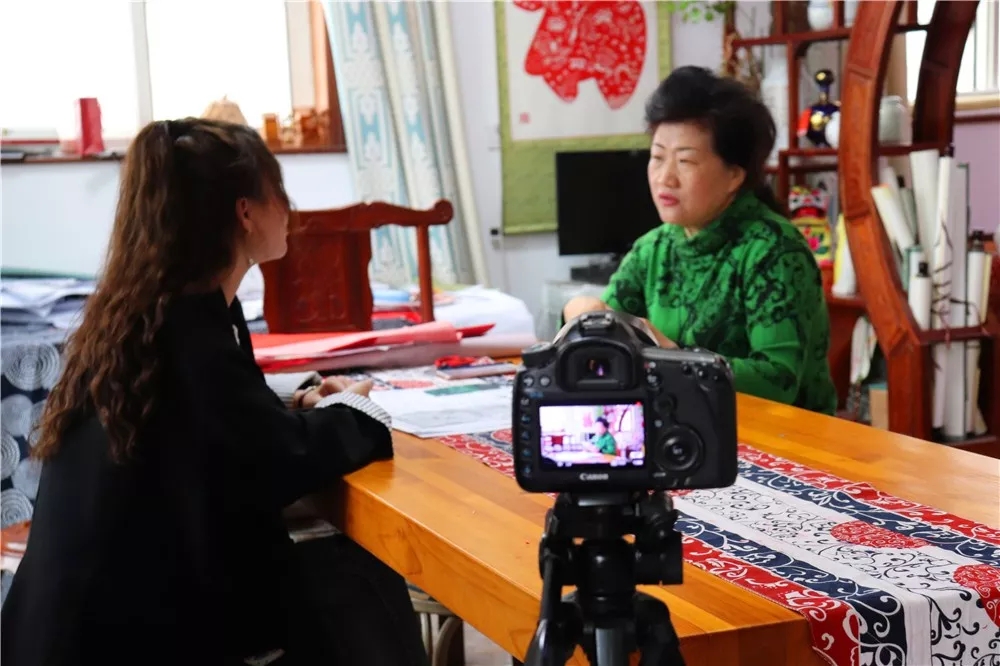 自媒體聯(lián)盟成員認(rèn)真學(xué)習(xí)剪紙過程