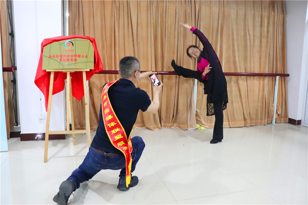 青島市自媒體聯盟-自媒體凝新服務團現場為居民拍攝美圖大片
