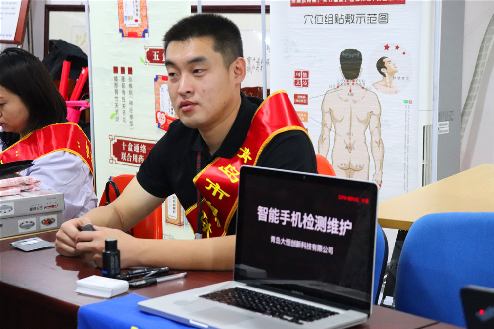 青島市自媒體聯盟-自媒體凝新服務團為社區居民提供智能手機檢測維護服務