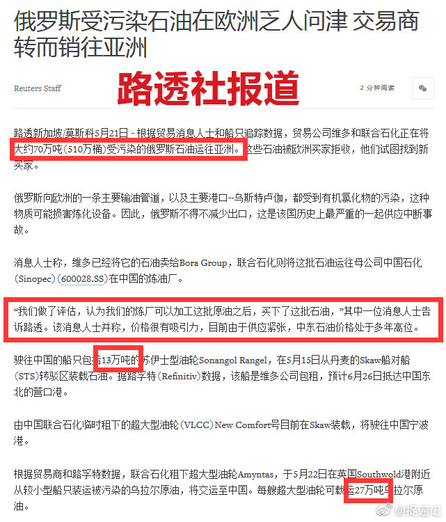 俄出口歐洲石油因污染被拒中國“接盤”?別被網傳消息輕易帶動情緒!