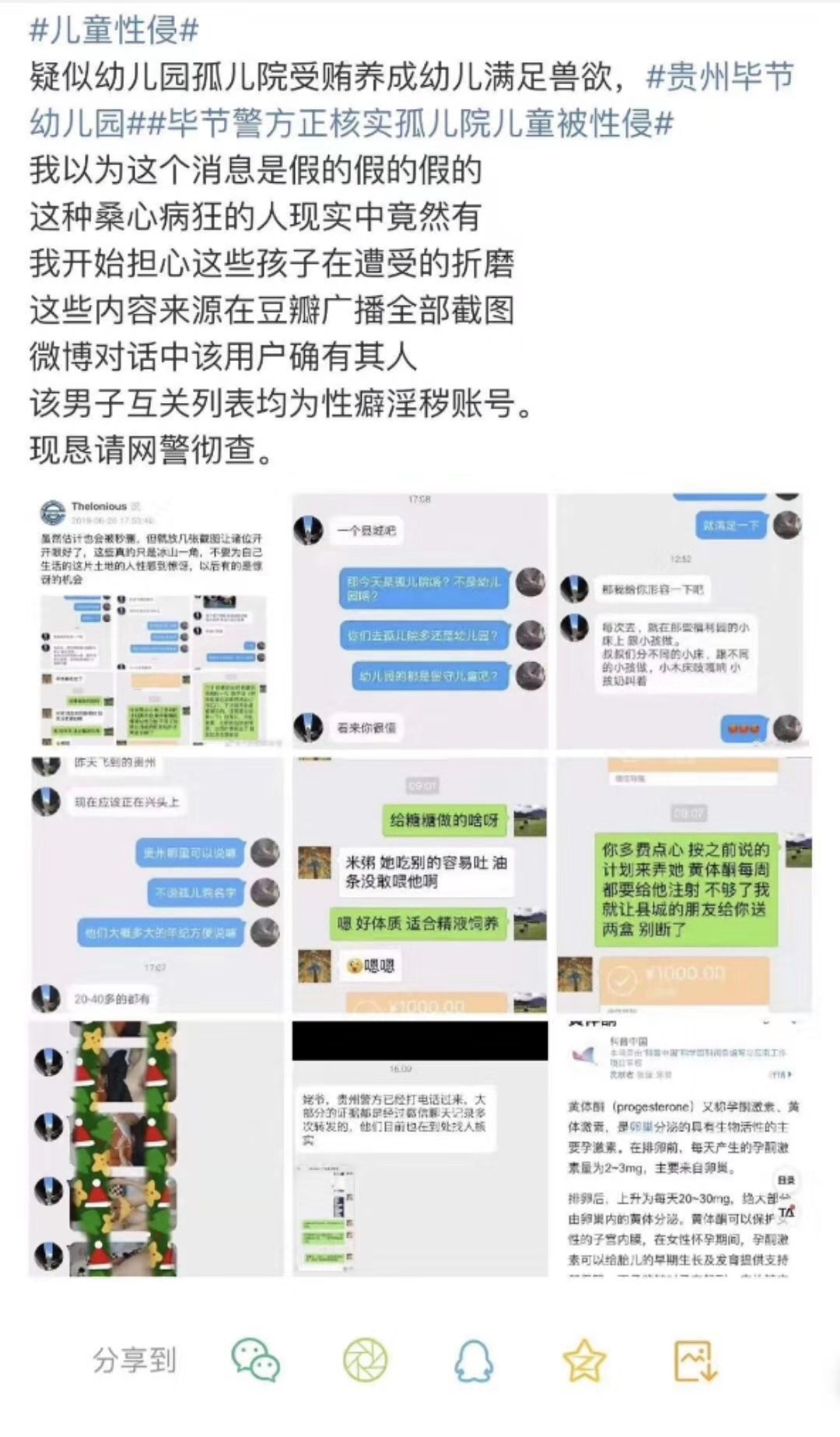 6月26日,有微博網(wǎng)友從豆瓣論壇中發(fā)現(xiàn)了一則與“侵害幼童”的帖子,在微博上引發(fā)網(wǎng)友們的高度關(guān)注。相關(guān)公安部門立即組織專案組進行調(diào)查。