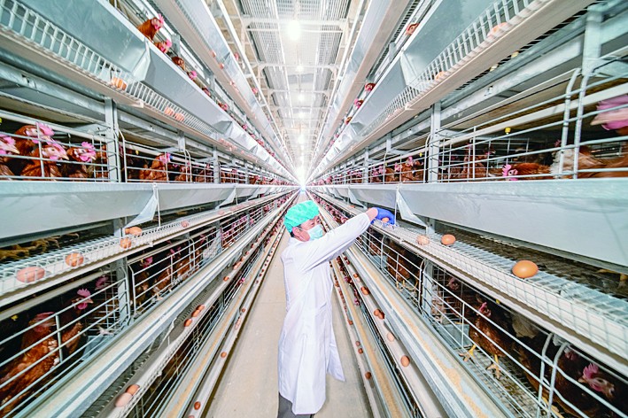 母雞住上九層雞舍。青島田瑞集團(tuán)廠區(qū)。