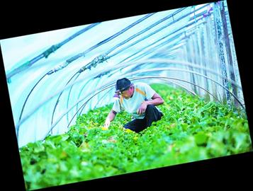 韓埠村果蔬專業(yè)合作社副理事長姜洪利正在采摘甜瓜。