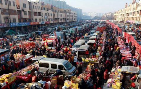 如果逢集那天再趕上又正好是雙休日,你看吧,方圓幾十里城鄉(xiāng)居民乘汽車、摩托、自行車,搭出租趕毛驢,浩浩蕩蕩,紛紛攘攘,四面八方匯集于此。將近年根的時(shí)候,連湖南、四川、云南一帶花農(nóng)也驅(qū)車前來趕集,幾華里長(zhǎng)得大集,攤挨攤、點(diǎn)靠點(diǎn);小販叫賣的、討價(jià)還價(jià)的、呼兒?jiǎn)九摹⒃偌由腺u老鼠藥的電喇叭一噓呼,混混雜雜,響成一片。人們摩肩接踵,匆匆如過江之鯽。趕集的人最高多達(dá)30余萬(wàn)。
