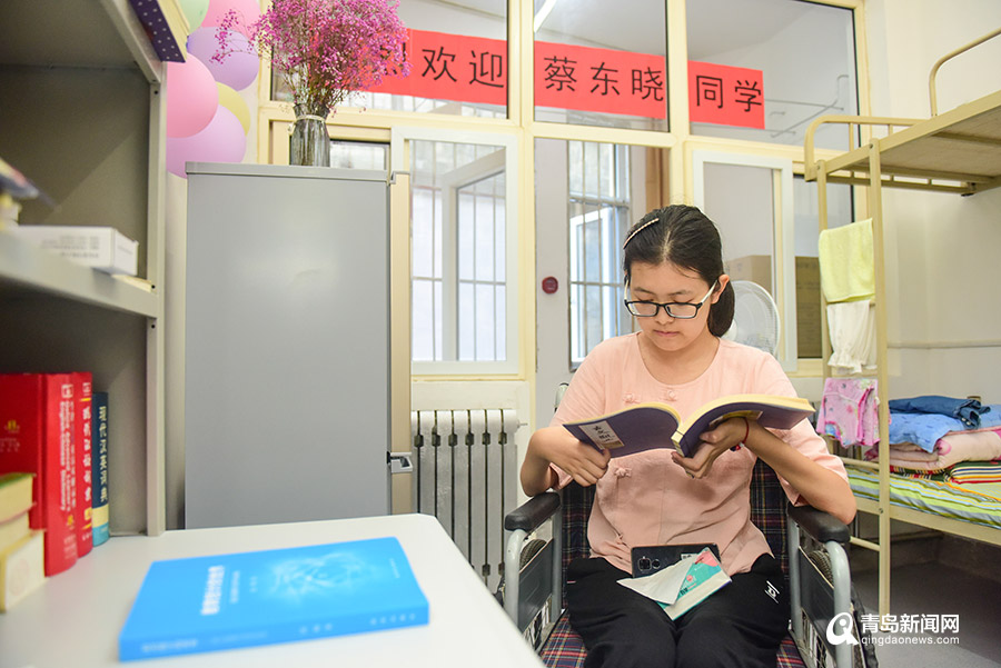 9月5日,一輛來自青島大學的專車停在蔡東曉家門前,青島大學的老師和學長學姐們一起來到平度接東曉上學。為了方便照顧,學校給蔡東曉母女免費提供單間宿舍,還給東曉媽媽在校內安排了臨時就業崗位。