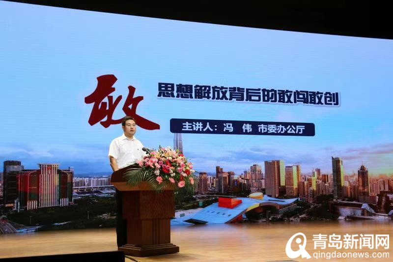 青島新聞網9月21日訊(記者 丁淑華)9月21日,青島市首批赴深圳體悟實訓成果宣講團報告會在嶗山區市民文化中心舉行。市委副秘書長、首批體悟實訓干部隊臨時黨支部書記張永國同志,帶領8位首批赴深圳干部組成宣講團,結合在深圳的所見所聞所思所感,從我眼中的深圳——“敢、為、人、先”和我心中的青島——“比、學、趕、超”八個方面分享心得感悟。