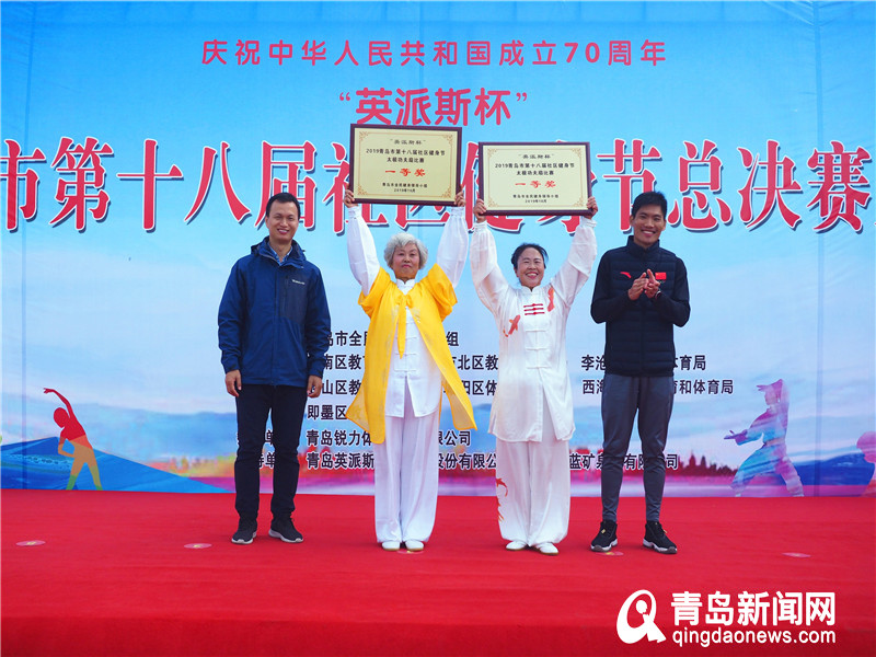 青島新聞網(wǎng)10月27日訊 (記者劉文超)昨天上午,2019“英派斯杯”青島市第十八屆社區(qū)健身節(jié)總決賽暨閉幕式在西海岸新區(qū)金沙灘啤酒城中心廣場成功舉辦。青島市體育局、青島市體育總會(huì)和各區(qū)市體育部門領(lǐng)導(dǎo),贊助支持單位相關(guān)負(fù)責(zé)人出席了當(dāng)天總決賽暨閉幕式,并在比賽結(jié)束后為獲獎(jiǎng)選手頒獎(jiǎng)。共有來自全市的32支隊(duì)伍448人參加健身球、健身舞、太極拳和太極功夫扇四個(gè)項(xiàng)目的決賽及展演。至此,歷時(shí)36天的青島市第十八屆社區(qū)健身節(jié)展演活動(dòng)圓滿落下帷幕。